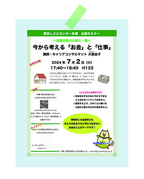 2024年7月2日(火)、東京仕事センター多摩の出張セミナーを開催します。