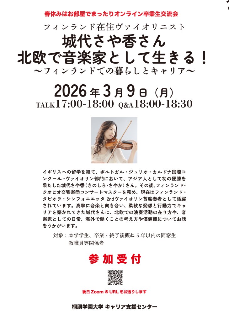 対象:本学学生、卒業・終了後概ね5 年以内の同窓生
